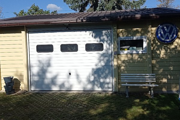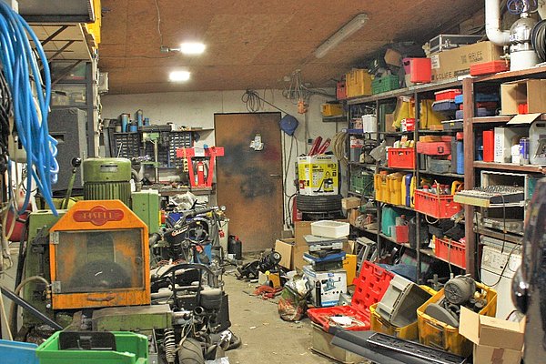 Beschreibung: Urige Selbstbau-Garage aus DDR-Zeiten, die im Jahr 1999 rekonstruiert wurde. Durch die aktive Nutzung als Schrauberlocation wird diese Garage zum authentisch-unordentlichen Drehort.